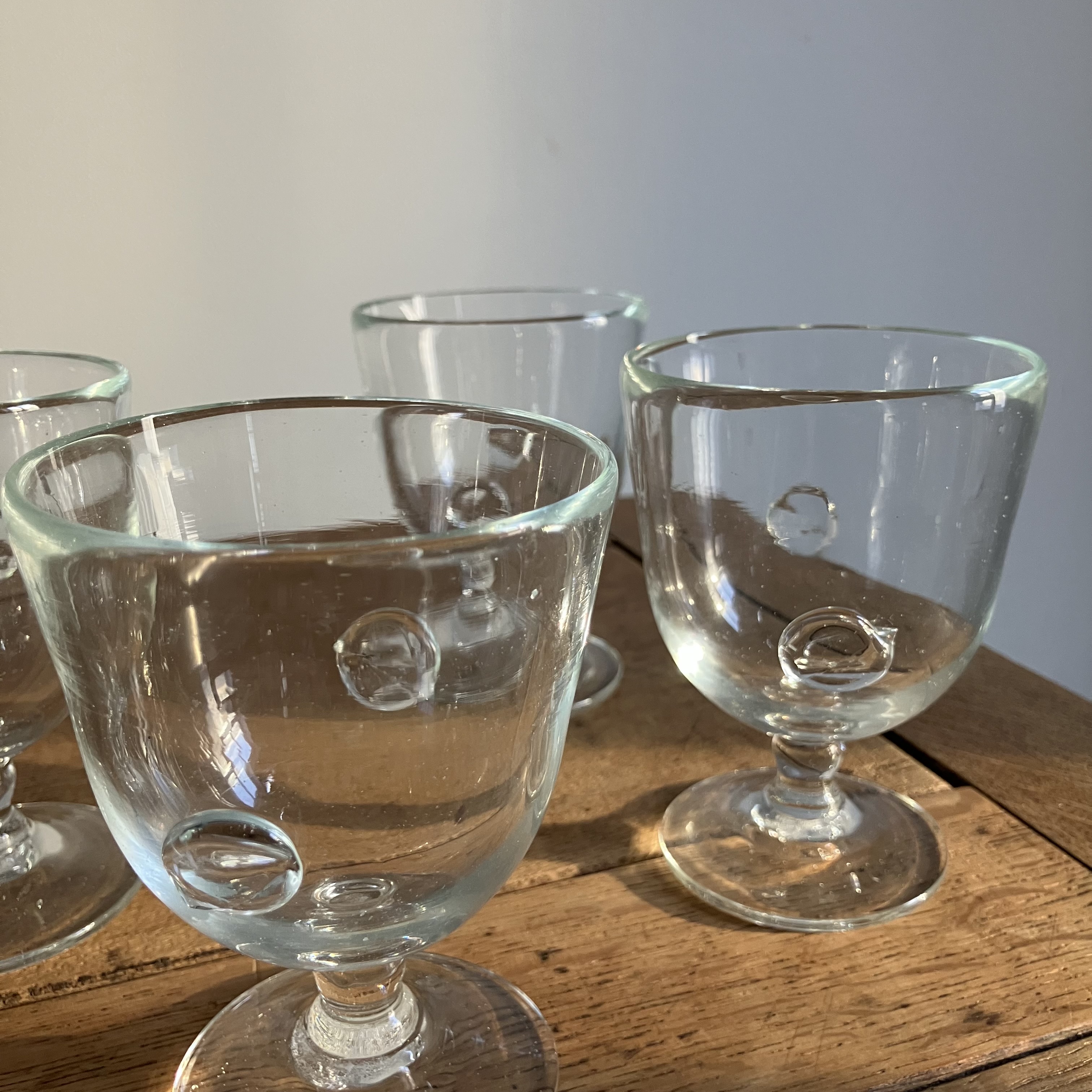 ボタン飾りのついた素朴なワイングラス。手造りで実物はびっくりするくらいサイズが違ってますが、それもまた良し。